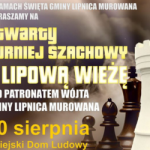 Turniej szachowy „O Lipową Wieżę” pod patronatem Wójta Gminy Lipnica Murowana został zainaugurowany w niedzielne przedpołudnie 10 sierpnia 2025 r. w Wiejskim Domu Ludowym w Lipnicy Dolnej. Wydarzenie odbyło się w ramach Święta Gminy Lipnica Murowana. W turnieju wzięło udział 50 zawodników, głównie z Małopolski, ale także z województwa świętokrzyskiego. Naszą gminę reprezentowało 5 osób. Inicjatorem i organizatorem turnieju był Pan Adrian Rudnicki – instruktor szachowy, współorganizatorem Wójt Gminy Lipnica Murowana, Pan Tomasz Gromala, oraz Gminny Dom Kultury w Lipnicy Murowanej. Nad przebiegiem rozgrywek czuwał Pan Czesław Markiewicz – sędzia turnieju. Po zaciętej i wyrównanej rywalizacji główne trofeum – „Lipowa