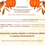 Informujemy, że od 14 listopada do 1 grudnia 2025 roku potrwa rekrutacja pracowników do Gminnego Żłobka. Dokumenty należy składać w Gminnym Żłobku w Lipnicy Murowanej (32-724 Lipnica Murowana 51). Więcej informacji pod nr tel. 537 297 214 Dołącz do naszej gminnej, żłobkowej rodziny!