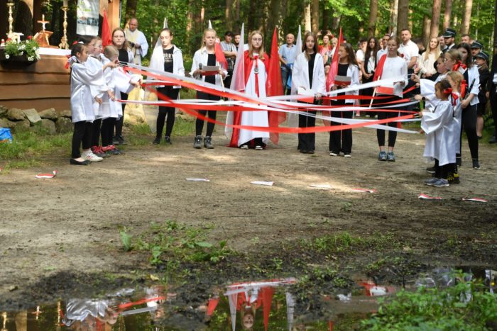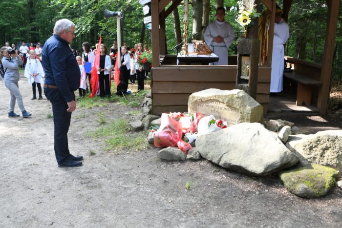 9 czerwca, liczna reprezentacja mieszkańców naszej gminy wędrowała ścieżką dydaktyczno-historyczną „Niepodległa”, aby uczcić pamięć poległych – najpierw pod znajdującym się na trasie obeliskiem, upamiętniającym działalność oddziału AK oraz leśnej szkoły podchorążych, a następnie pod krzyżem powstańców. To tradycyjne międzygminne i międzyparafialne spotkanie mieszkańców gminy Lipnica Murowana i Iwkowa ma szczególne znaczenie – jest okazją do dziękowania za dar wiary i wolności wywalczonej przez naszych przodków. Krzyż symbolizujący cierpienie narodu w niewoli stał się miejscem gdzie od kilku lat odprawiana jest Msza św. za Ojczyznę. Przedstawiciele lokalnych władz – Tomasz Gromala Wójt Gminy Lipnica Murowana, Bogusława Strugała Przewodnicząca Rady Gminy Lipnica Murowana, Kinga Kępa Radna Rady Gminy Lipnica Murowana, delegacja iwkowskiego samorządu na czele z Wójtem Bartłomiejem Durbasem oraz delegacja na czele z Prezesem Gminnego Koła Kombatantów AK Stanisławem Wieciechem i reprezentacją Rajbrotu na czele z Panem Józefem Radziętą – oddali hołd poległym bohaterom oraz złożyli wiązanki.
