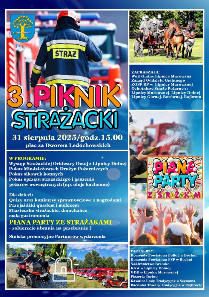 Wójt Gminy, Zarząd Gminny OSP, oraz Ochotnicze Straże z terenu gminy wraz z partnerami wydarzenia zapraszają na III Piknik Strażacki na pożegnanie lata. Liczne atrakcje i mnóstwo nagród czekają.