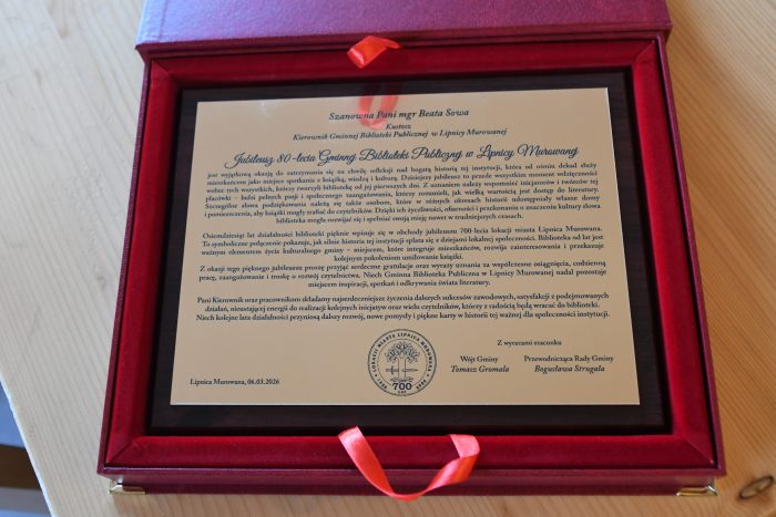 Dalsza część obchodów jubileuszu odbyła się w Gospodzie pod Kamieniem w Lipnicy Górnej, gdzie Kierownik Gminnej Biblioteki Publicznej zaprezentowała historię biblioteki, przypominając jej początki, rozwój oraz liczne inicjatywy i projekty realizowane na przestrzeni lat. Była to okazja do wspomnień, ale także do pokazania, jak ważną rolę biblioteka odgrywa w życiu kulturalnym i edukacyjnym mieszkańców gminy.