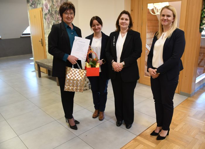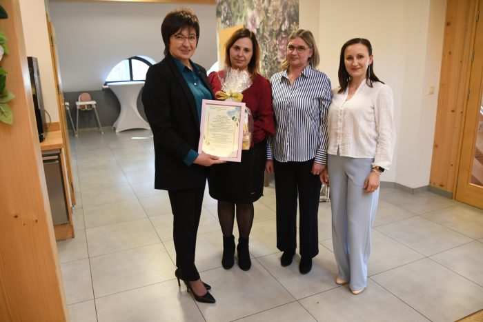 Na zakończenie Wójt Gminy wraz z Przewodniczącą Rady Gminy oraz Sekretarz Gminy wręczyli pani Beacie Sowie pamiątkowy grawer, jako wyraz uznania i podziękowania za wieloletnią pracę oraz zaangażowanie w rozwój biblioteki i czytelnictwa w gminie.