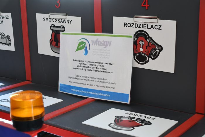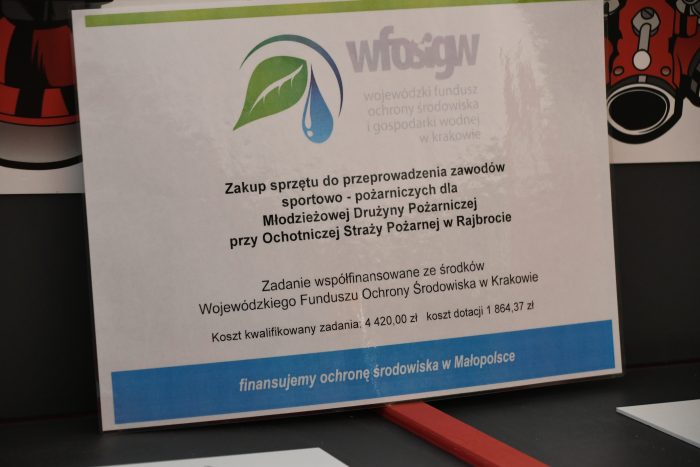 Młodzieżowa Drużyna Pożarnicza w Rajbrocie przy wparciu finansowym gminy Lipnica Murowana zrealizowała zadanie współfinansowane ze środków Wojewódzkiego Funduszu Ochrony Środowiska i Gospodarki Wodnej w Krakowie pn. ” Zakup sprzętu do przeprowadzenia zawodów sportowo – pożarniczych dla członków Młodzieżowej Drużyny Pożarniczej przy Ochotniczej Straży Pożarnej w Rajbrocie ” w ramach Programu „Mały Strażak”
