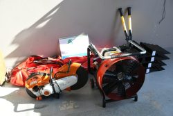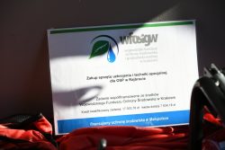 Ochotnicza Straż Pożarna w Rajbrocie z nowym sprzętem zakupionym ze środków Wojewódzkiego Funduszu Ochrony Środowiska i Gospodarki Wodnej w Krakowie w ramach Programu „Zapobieganie poważnym awariom i likwidacja ich skutków dla środowiska – Bezpieczny Strażak”