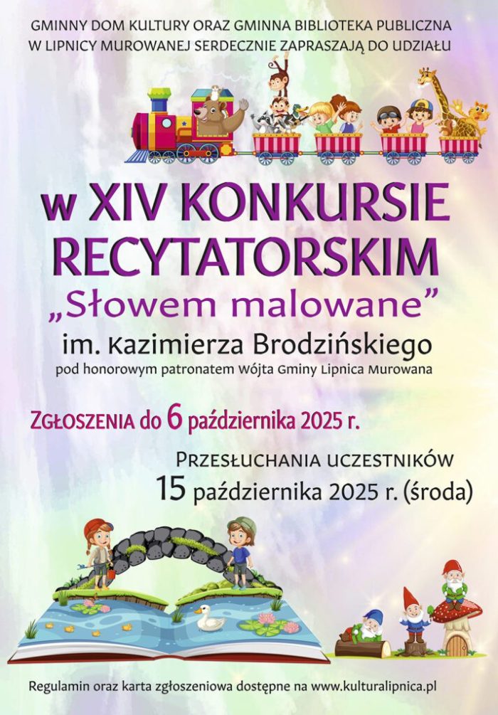 Serdecznie zapraszamy uczniów szkół podstawowych z terenu naszej gminy do udziału w Konkursie recytatorskim „Słowem malowane” im. Kazimierza Brodzińskiego!