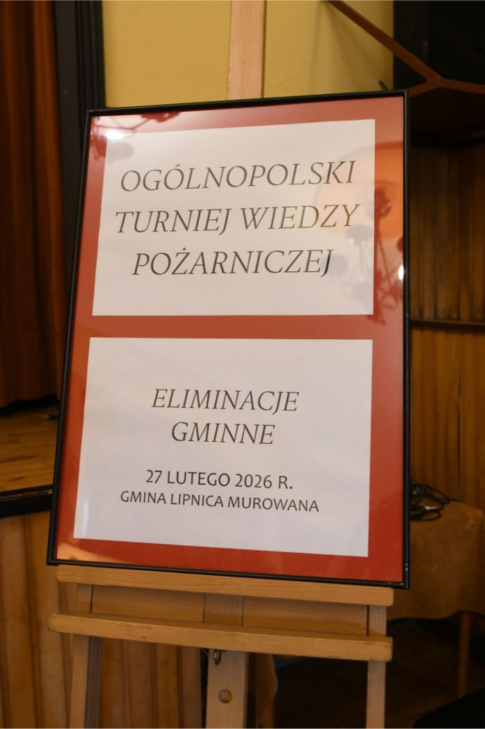 W dniu 27 lutego 2026 roku w Gminie Lipnica Murowana odbyły się Eliminacje Gminne Ogólnopolskiego Turnieju Wiedzy Pożarniczej pod hasłem: “Młodzież Zapobiega Pożarom”