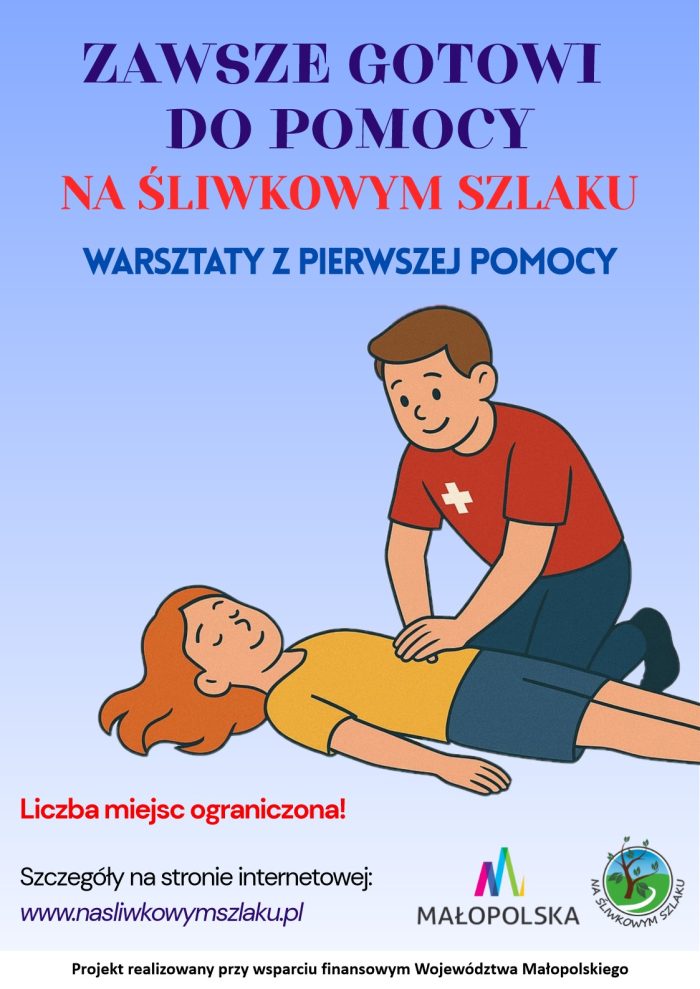 Stowarzyszenie „Na Śliwkowym Szlaku” ogłasza rekrutację uczestników do projektu pn. „Zawsze gotowi do pomocy na Śliwkowym Szlaku”. W ramach projektu zaplanowano organizację 14 warsztatów z pierwszej pomocy na terenie Śliwkowego Szlaku.