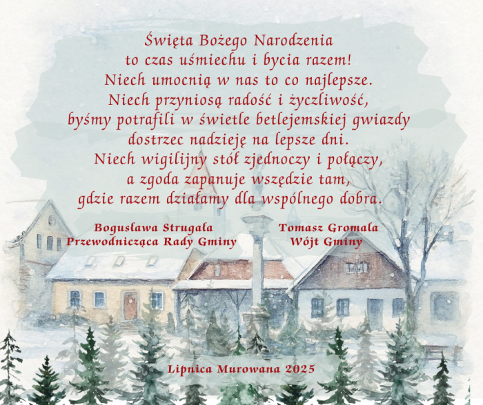 Przekazujemy świąteczne życzenia od władz samorządowych gminy Lipnica Murowana.