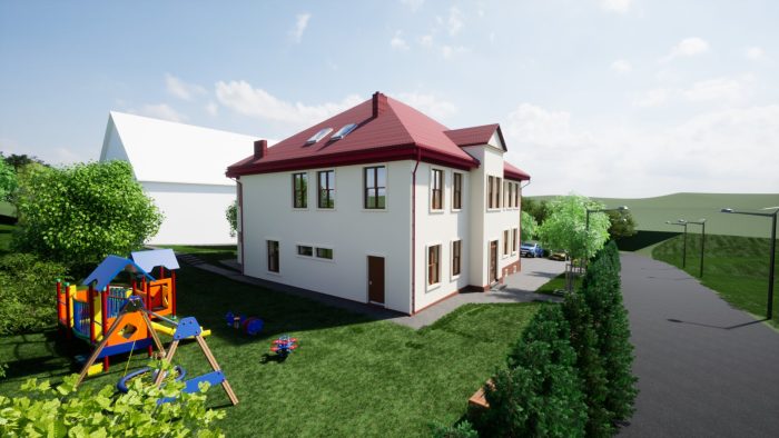 - Kompleksowy remont i modernizację budynku z wymianą wewnętrznych instalacji, wewnętrznej i zewnętrznej stolarki okiennej i drzwiowej, przebudową ścian wewnętrznych, wymianą wewnętrznych tynków i okładzin ściennych oraz podłogowych, przebudową dachu oraz kompleksową termomodernizacją obiektu z montażem pompy ciepła, wentylacji i klimatyzacji, instalacji fotowoltaicznej.