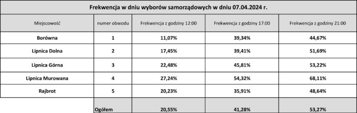 Frekwencja na godz. 17:00: https://wybory.gov.pl/samorzad2024/pl/frekwencja/17/pow/120100