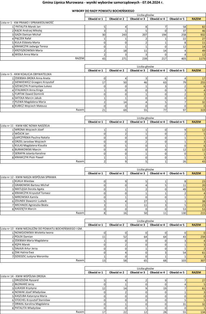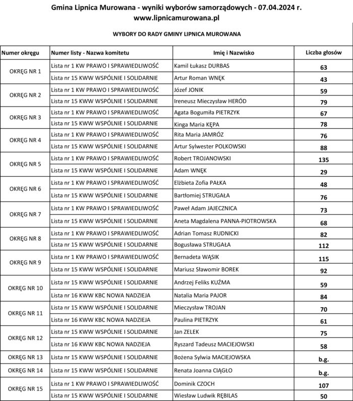 Wyniki wyborów samorządowych – Gmina Lipnica Murowana