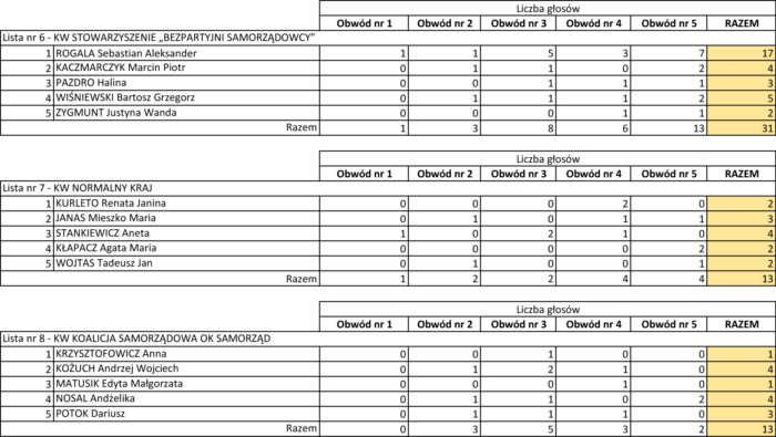 Wyniki Rada Powiatu: https://wybory.gov.pl/samorzad2024/pl/rada_powiatu/okreg/120100/5