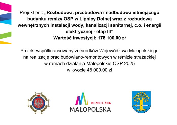 Inwestycja była współfinansowana ze środków Województwa Małopolskiego w ramach programu „Małopolskie OSP 2025”.