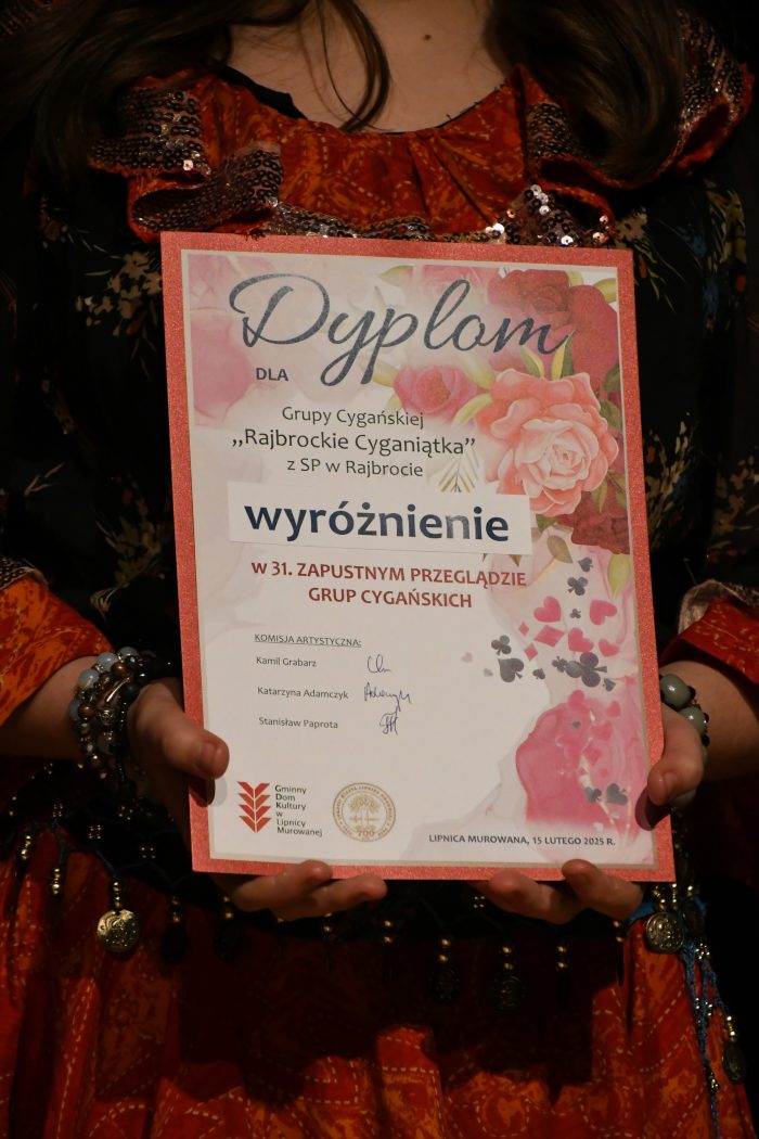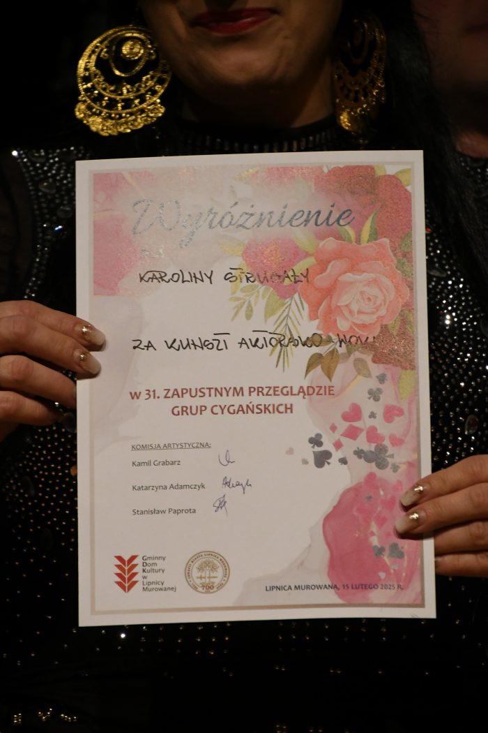 dwa wyróżnienia dla: Grupy „Małe Cyganiątka” ze Świetlicy Wiejskiej w Lipnicy Górnej oraz Grupy Cygańskiej „Rajbrockie Cyganiątka” ze Szkoły Podstawowej w Rajbrocie.