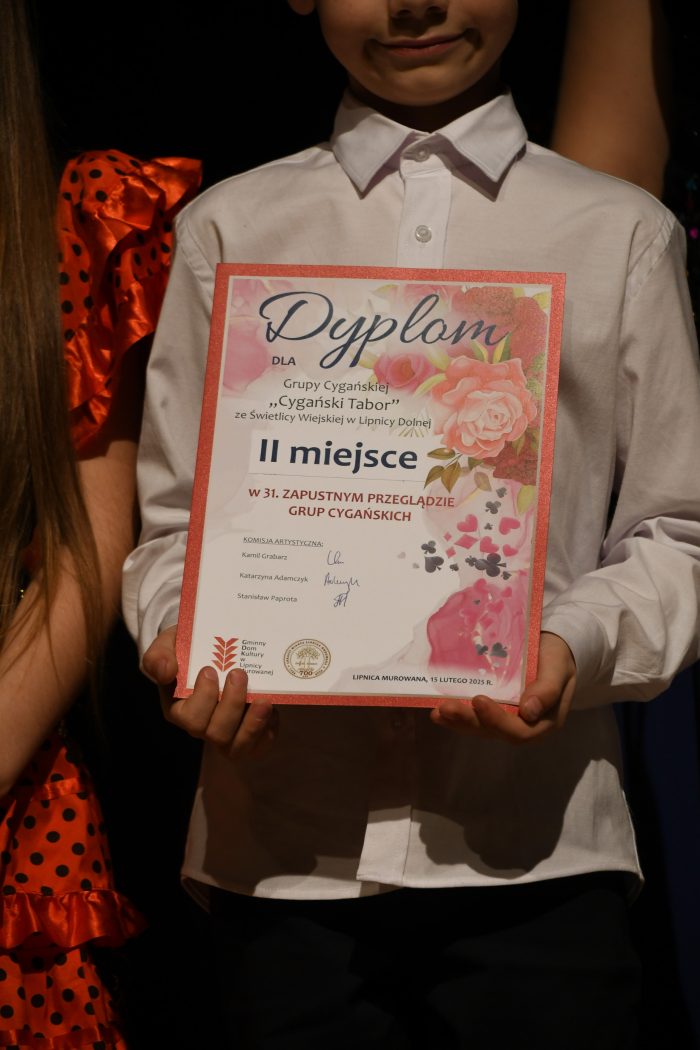 II miejsce dla: Grupy Cygańskiej „Cygański Tabor” ze Świetlicy Wiejskiej w Lipnicy Dolnej